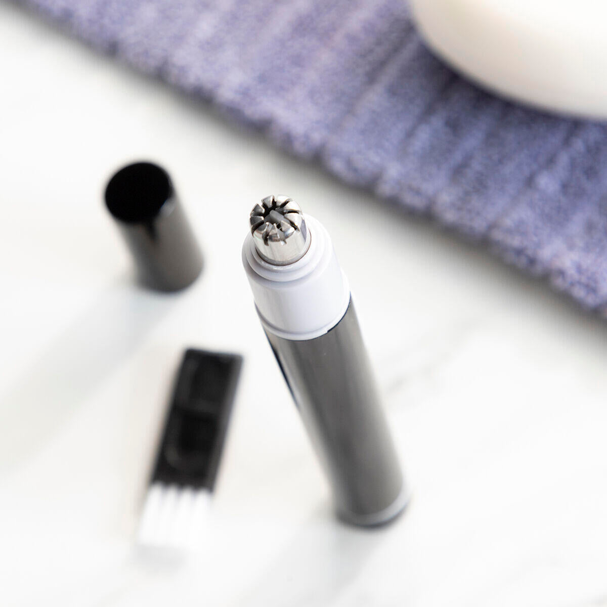 Un cortapelos de nariz y oreja con un diseño moderno, ergonómico y compacto ideal para recortar y perfilar el antiestético vello de la nariz y las orejas. Además, es inalámbrico y funciona con 1 pila AAA (no incluida), sin necesidad de molestos cables ni enchufes. Por su tamaño reducido y discreto, es muy fácil de llevar y guardar en cualquier parte, ya que apenas ocupa espacio. Este mini recortador de vello de precisión permite llegar hasta las zonas de más difícil acceso. Una de sus características principales es que es indoloro, ya que no estira del pelo ni lo arranca de raíz, sino que lo corta sin causar ningún daño ni dolor en esas zonas tan sensibles. Dispone de un único botón on/off y es muy fácil de usar. Funciona mediante un sistema de corte circular, sólo hay que moverlo con suavidad por el interior de la nariz y las orejas y repetir la operación hasta que el vello desaparezca. El cabezal de corte es desmontable para facilitar su limpieza y cuenta con una tapa protectora para cubrir la cuchilla de forma segura. Incluye un pequeño cepillo de limpieza.